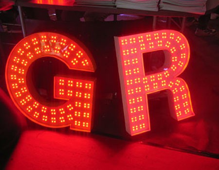 外露發(fā)光字又被稱為不銹鋼沖孔發(fā)光字、鈦金字、鋅鐵字等,分別由不銹鋼板,鈦金板,鍍鋅鐵板沖孔后,裝上LED防水燈串制作而成。在制作前要先選好材料,做什么字,選什么材料,根據(jù)字體大小,安裝的位置和客戶的要求,選擇相應的板材,然后把整張的板材用機床進行沖孔,然后用刻機對面板刻出字形,然后把刻好的字焊接成立體邊,再進行打磨光滑,避免毛刺。然后就是噴烤油漆,油漆干后,就可以裝LED單顆燈串了,裝燈串的時候務必要考慮能夠方便接線,每顆燈用橡膠套做風水處理,這么做也比較有利于后期對外露發(fā)光字進行維護。