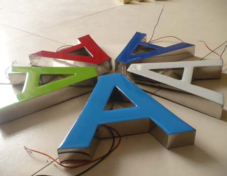 不銹鋼燈箱發(fā)光立體字是由亞克力發(fā)光字箱體和LED光源組成。首先電腦雕刻機(jī)把亞克力字形和圍邊雕刻出來(lái),用粘接劑把亞克力字面與圍邊粘接在一起,接成箱體, 底板用等離子切割或雕刻機(jī)切割而成。 其內(nèi)部置入LED燈光源組合而成, 一次成型,不用修邊,不用打磨,外觀精美,表面光亮如鏡, 夜晚亮燈立體感強(qiáng)。